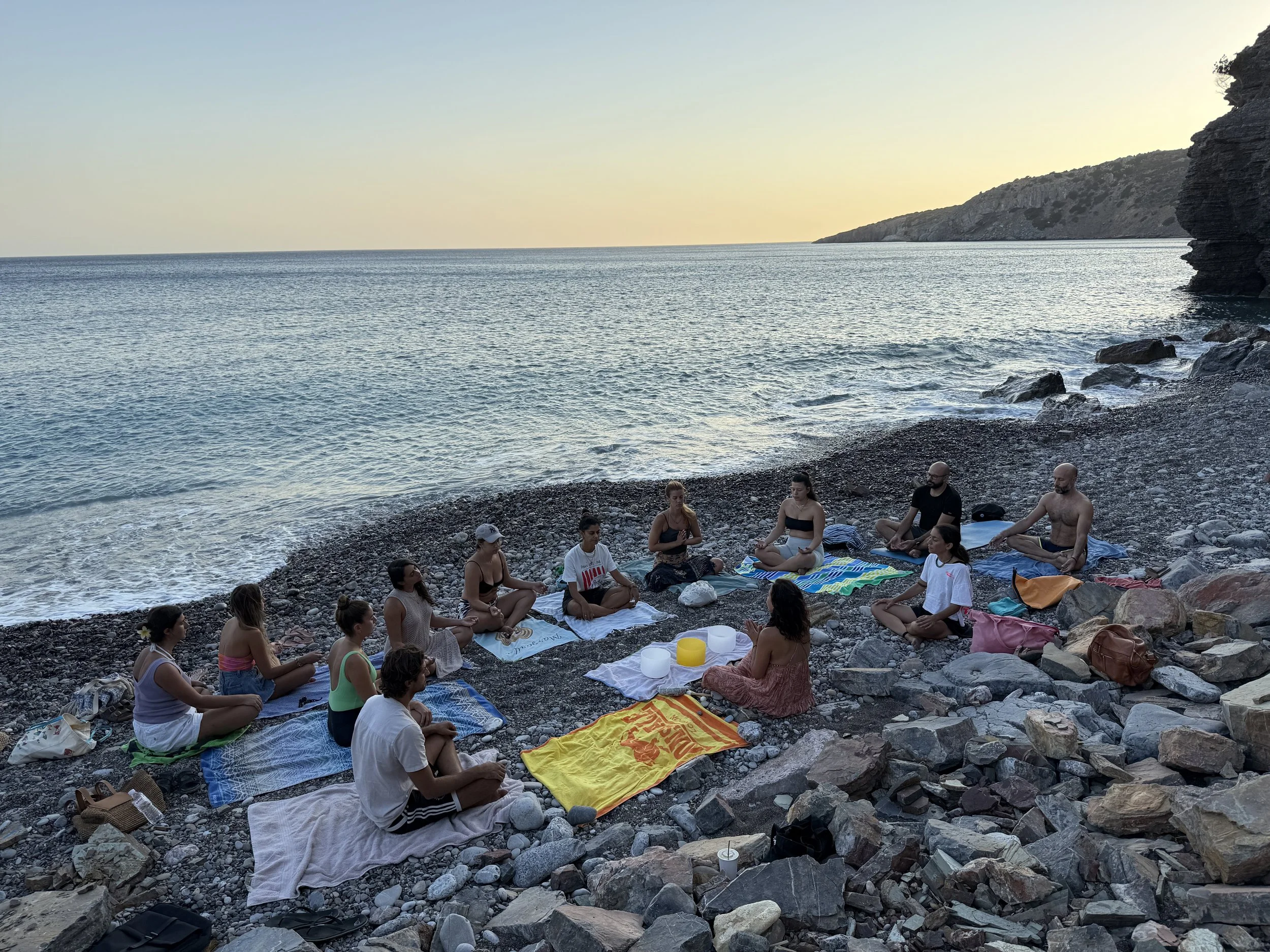 We had the support and grounding energy of the earth beneath us, the fire of the setting sun, the expansive, clear blue skies, and the soothing laps of the waves which all joined in harmony with the healing vibrations of the crystal sound bowls. Together, these elements created a sacred space for deep relaxation and restoration, inner balance and reconnecting with your higher self.